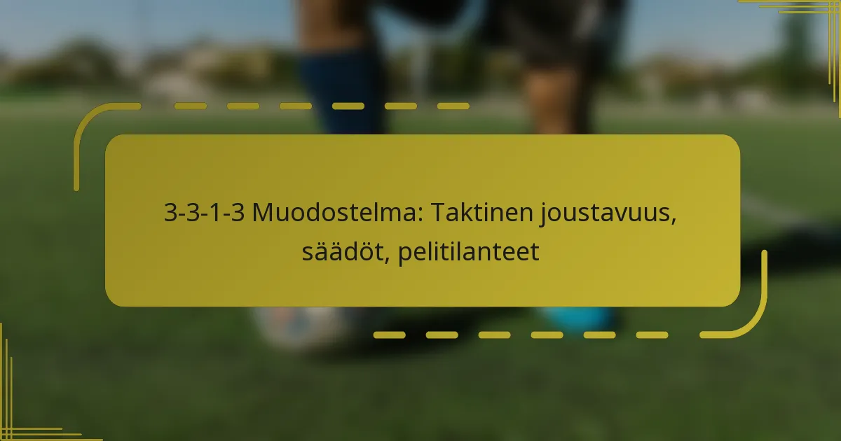 3-3-1-3-formaatio tarjoaa valmentajille taktista joustavuutta ja mukautumiskykyä eri pelitilanteissa. Ymmärtämällä pelaajien roolit ja tekemällä ajankohtaisia säätöjä, valmentajat voivat maksimoida joukkueensa suorituskyvyn ja reagoida tehokkaasti vastustajiin.